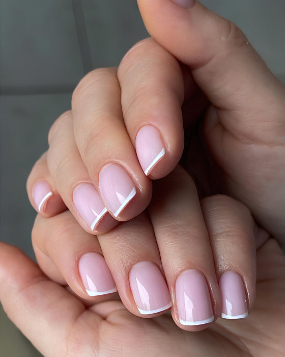 - For strengthening, always file your natural nail by at least 1 mm from the underside to prevent lifting at the free edge.