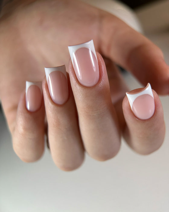 - If strengthening nails, always file your natural nail from the underside by at least 1 mm to avoid free edge lifting.