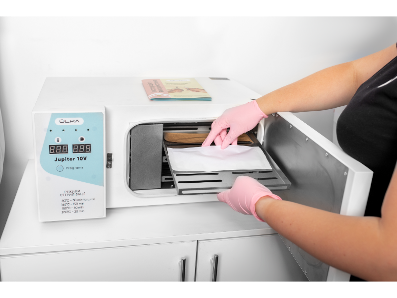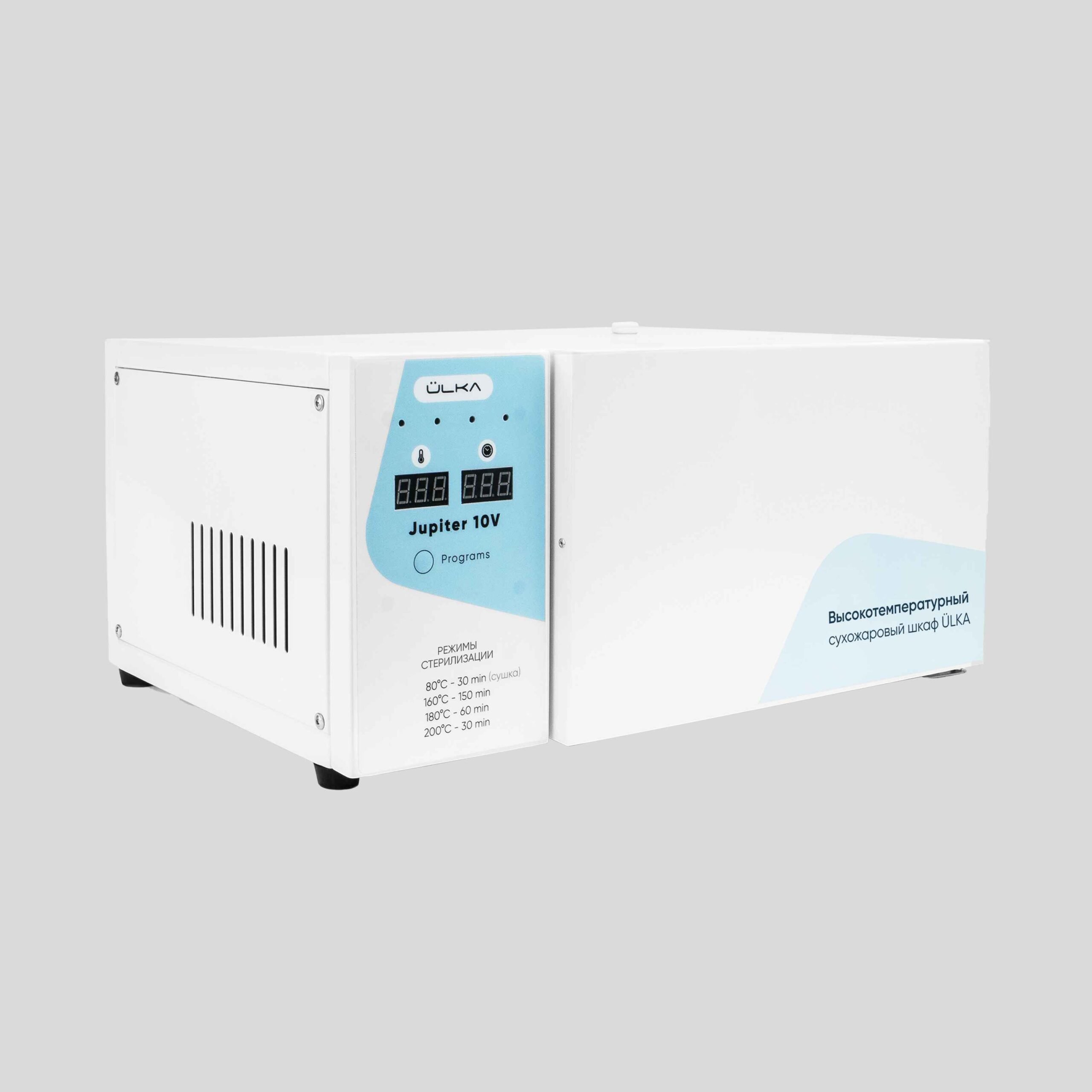 High-temperature dry heat sterilizer Jupiter 10V is intended for air sterilization of metal and glass products at +200°C in the field of beauty services.